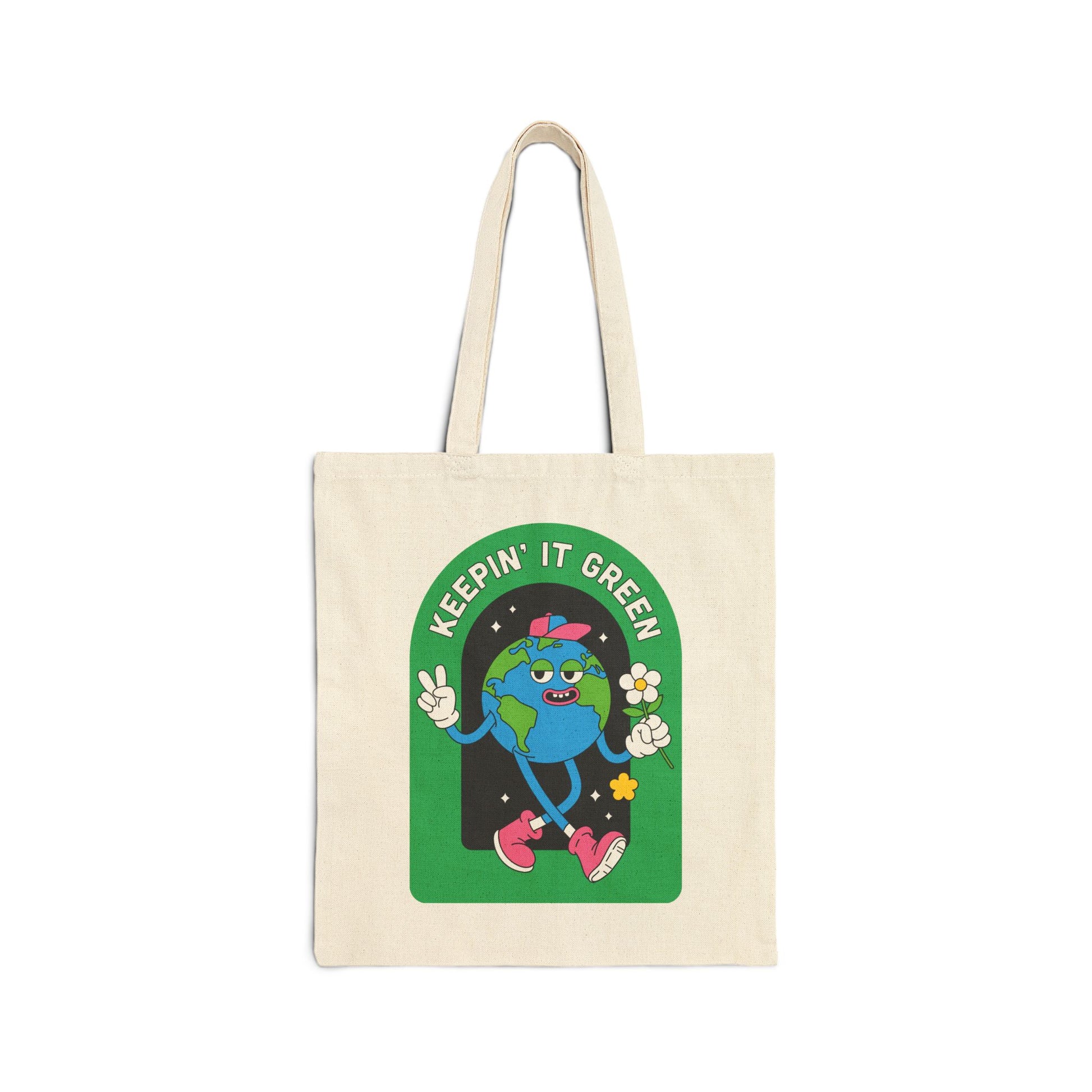 This tote bag comes in one size – 15" x 16"– perfect for everyday wear. It's durable and will last for years. The bag features 20" handles. Made from 100% cotton canvas.